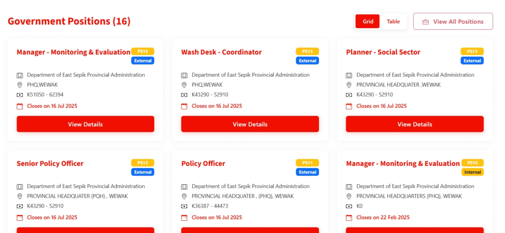 East Sepik Provincial Administration – The first government organization to successfully implement DERS, demonstrating the system’s effectiveness in modernizing recruitment processes. The implementation has resulted in: